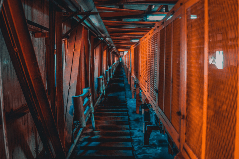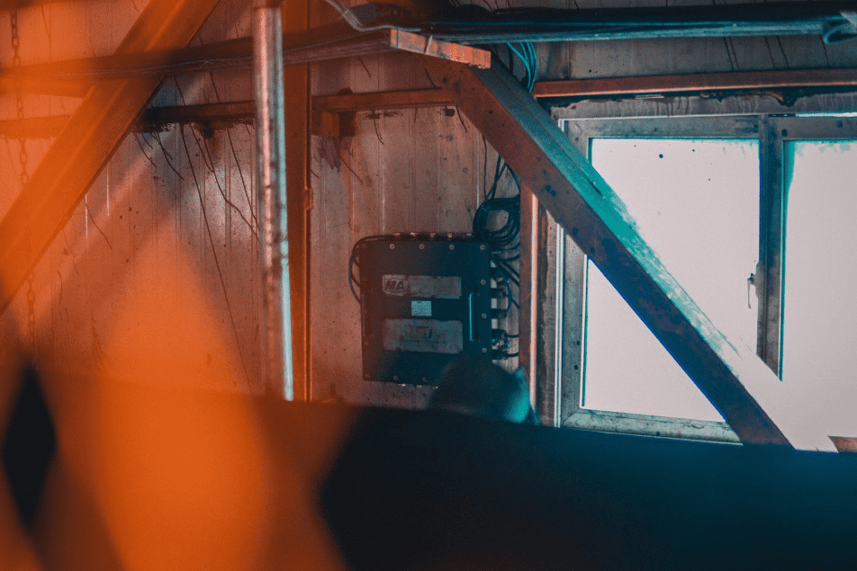 順著延綿不斷的階梯到達了水蜜桃在线免费TST輸送帶鋼繩芯探傷(機站)係統的前置設備安裝地方。